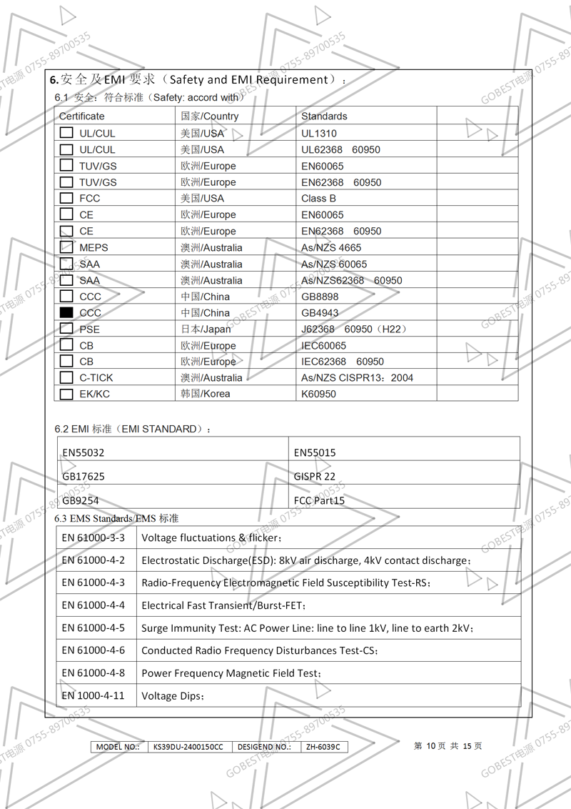 12V1.25A電源適配器規(guī)格書(桌面式)